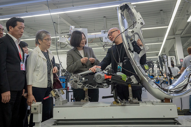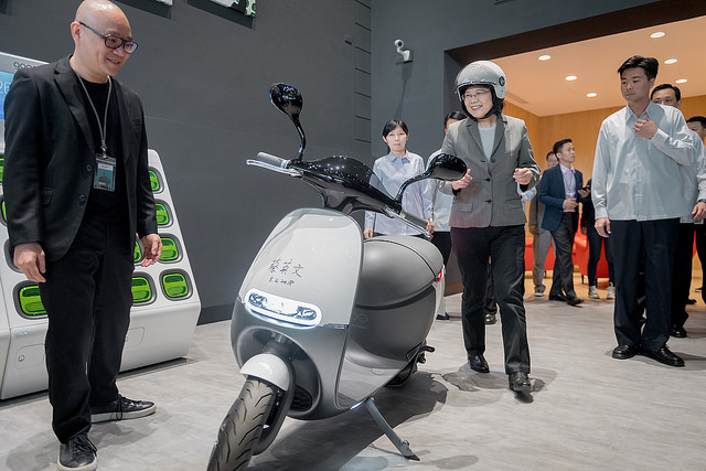蔡英文總統今(4)日上午前往桃園參訪睿能創意(Gogoro)公司,肯定該公司在電動機車產業的成果,也表示很高興看到智慧產業能量在臺生根發展,讓臺灣產業充滿希望。