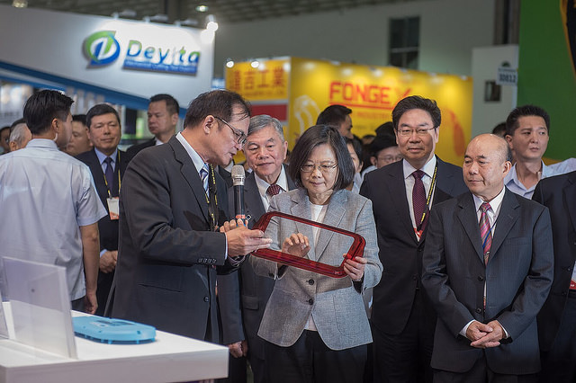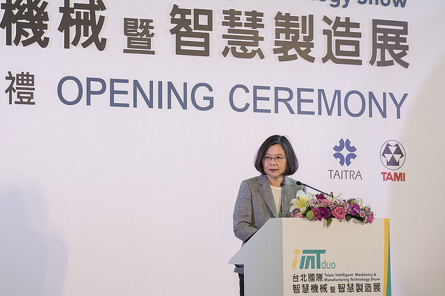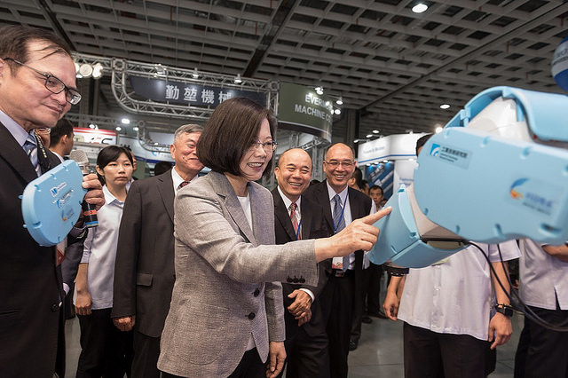 蔡英文總統今(9)日上午出席「2018年臺北國際智慧機械暨智慧製造展」開幕典禮時表示,政府會從「擴大資源整合」、「擴大培育高階技術人才」及「擴大設備國產化的比重」三個方向推動智慧機械的發展。