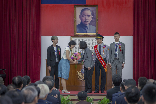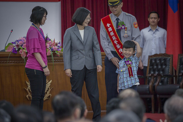 還有ㄧ群人最辛苦,就是我們警察同仁的家人。今天很多得獎人把家人也都帶過來。因為眷屬的體諒跟付出,警察為社會打拚時,才沒有後顧之憂,臺灣,真的很感謝有你們。