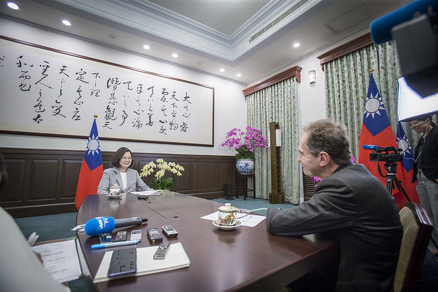 總統:我想這是雙方需要持續努力的,我們會不斷地告訴對方,對話與溝通是解決現在兩岸許多問題,最重要的一個方法,我也希望中國可以感受到,我們願意溝通與對話的誠意,也希望他們做為一個區域負責任的一份子,能感知自己也有責任,與臺灣坐下來,好好溝通與對話。