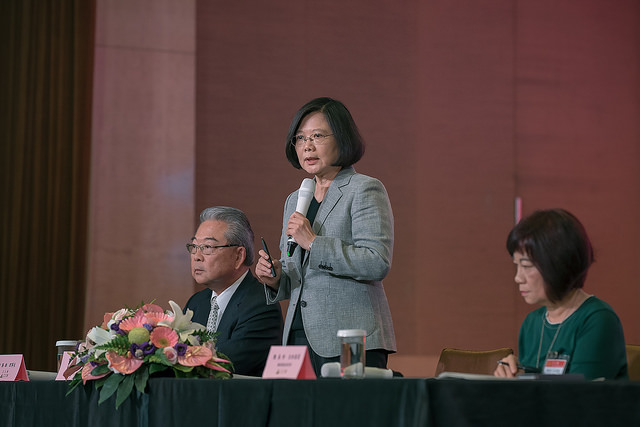 最後,針對兩岸關係,總統表示,自她就職以來,臺灣就盡最大的努力在維持穩定的現狀。區域的現狀及關係越來越複雜,在這樣的情況下要維持兩岸關係的穩定,是政府很重要的責任。臺灣正處於經濟及社會轉型的關鍵時刻,需要企業界跟政府一起努力,維持區域和平穩定的狀態不是只有一方的責任,是所有區域內國家共同的責任,更是兩岸雙方都要各自負起的責任。