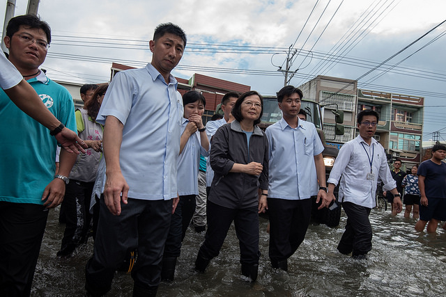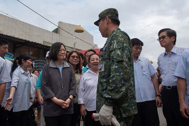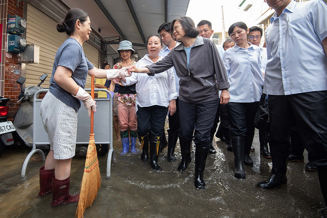 總統至布袋觀光碼頭附近的商圈了解淹水、商品及海產受損情形,總統也向災民承諾國軍會入駐協助清理,政府也會全力協助災後復原及疫情防範工作。