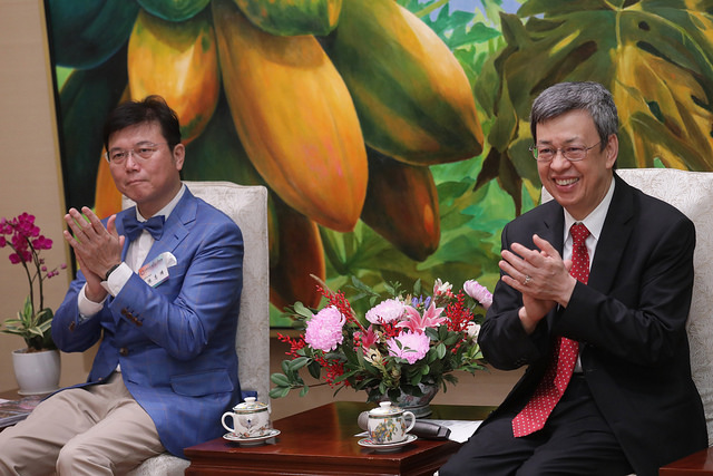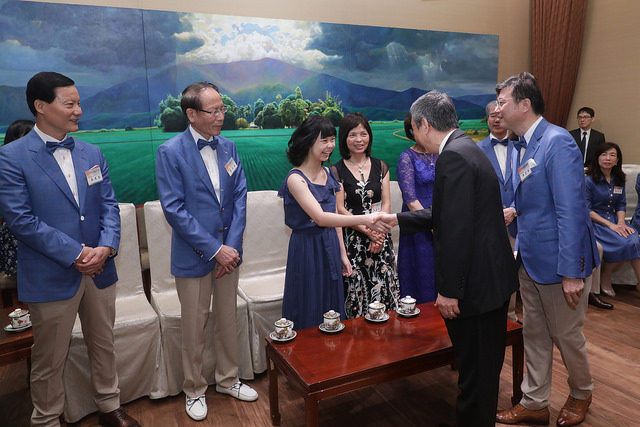 訪賓一行包括中華民國洋服同業總會理事長陳志烽、世界洋服同業聯盟會長何良鴻等,由經濟部次長龔明鑫陪同,前來總統府拜會副總統。