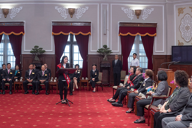 總統致詞時提到,去年11月,她曾到桃園參加國際同濟會在臺50週年慶祝晚會,很高興今天能夠在總統府接待許嫦卿總會長及各位貴賓,也向所有的得獎人表達最誠摯的恭賀。