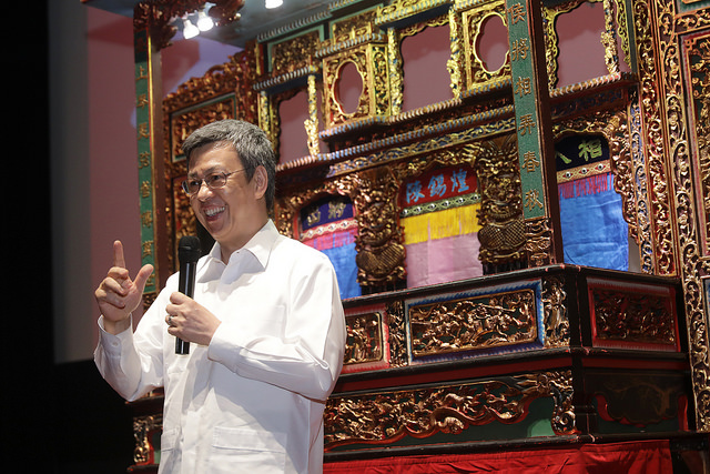 最後,副總統希望,臺灣的企業界有機會能夠多多包場,讓大家分享這個臺灣應該要留下來的傳統。如果沒有文化傳統,我們就沒有「根」,臺灣就無法像一棵樹越長越大。感謝陳師傅「播種」,期盼他的徒弟也會變成很多株樹,讓全世界都看得到臺灣的美與好。也因為陳師傅對人生的堅持、打拼,走出自己的一條路,是他一輩子值得學習的對象,也是他的「師傅」。