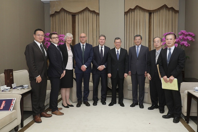 訪賓一行尚包括英國在臺辦事處代表唐凱琳(Catherine Nettleton),由外交部次長謝武樵陪同,前來總統府拜會副總統。