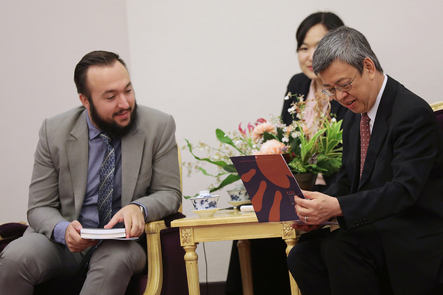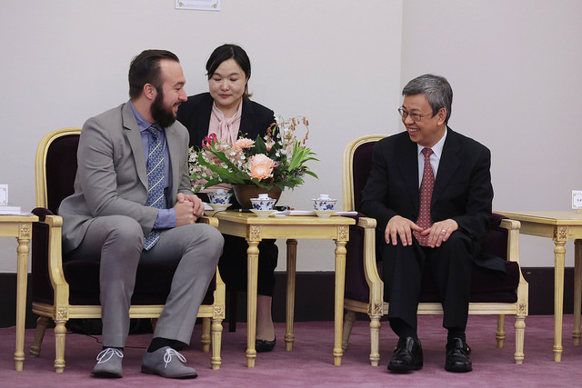 訪賓一行由義大利卡羅歐巴尼協會會長唐馬斯歐巴尼(Tommaso Urbani)率領,衛生福利部次長呂寶靜、立法委員院吳焜裕陪同,前來總統府拜會副總統,總統府國策顧問張富美也在座。