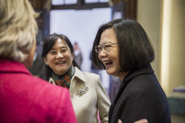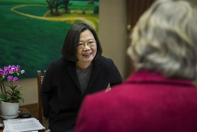 總統:在談到擔任總統這職位前,我必須先說一個故事。2008年,我所屬的民進黨在總統大選遭受重大挫敗,臺灣人民與黨員都感到沮喪,民進黨負債沉重,資深黨員沒有人願意出任領導人。因此年輕黨員勸我角逐黨主席,這是臺灣政治發展非常重大的一步,因為傳統上女性通常不會和黨主席聯想在一起。我認為我勇於接受參選的挑戰。