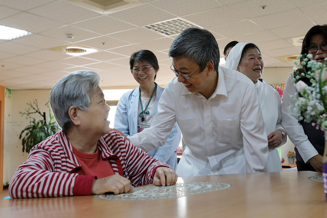 副總統感謝中華聖母修女會無私的奉獻,成為全臺灣長期照護的典範,他感受到天主對這裡的眷顧,是一個講愛的地方。聖馬爾定醫院一向以關懷生命、慈悲喜捨的服務精神,配合政府政策,讓老人家「老而有用」、「老而健康」。對此,他表達最高的敬意與感謝。