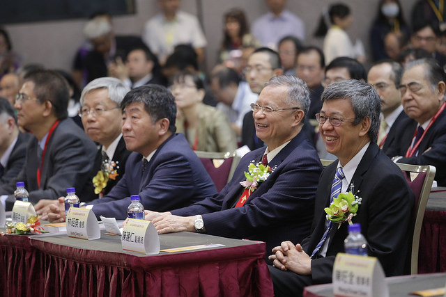 副總統以英文致詞,他首先歡迎各國嘉賓來臺參與本屆學術大會,並代表臺灣的政府與人民,向在場貴賓表達誠摯的敬意與感謝。
