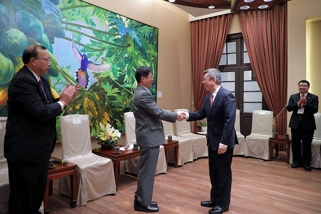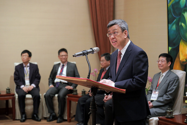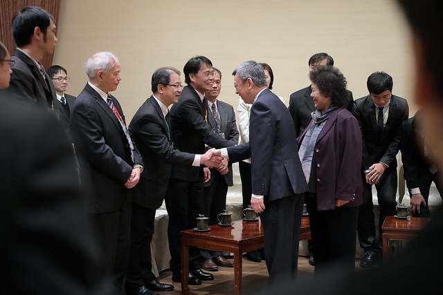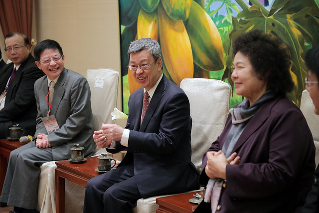 訪賓一行由行政院環境保護署代理署長蔡鴻德陪同,前來總統府晉見副總統,總統府秘書長陳菊也在座。