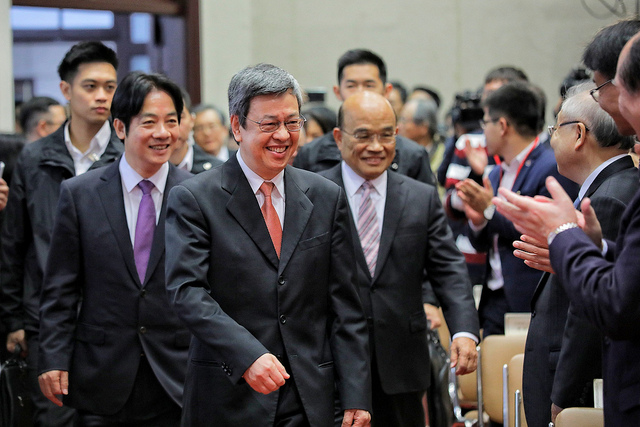 首先,我要對賴院長任內卓越的施政表現,表達高度敬意和謝意;對於新上任的蘇院長,我也要預祝新的行政團隊施政圓滿順利,繼續為國家與人民開創最大的利益與福祉。