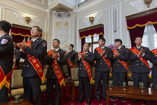 總統提到,過去幾年,在臺灣的重大災難事件中,消防同仁、義消弟兄姊妹,以及志工朋友的辛苦付出,都帶給臺灣人民很大的溫暖和感動。