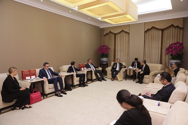副總統提及,今年3月31日上午,兩架中國戰機蓄意飛越臺海中線的挑釁行徑,更是對臺灣人民的生命安全造成嚴重的威脅。歐盟對此立即於4月2日回應強調,亞洲的和平與安全攸關其重大利益,再度呼籲兩岸對話及合作。對於歐盟關心臺海情勢,副總統表達誠摯謝忱,並期盼與會議員能持續關注臺海安全情勢,並促請盧國政府注意中國意圖破壞兩岸和平現狀的挑釁行徑。