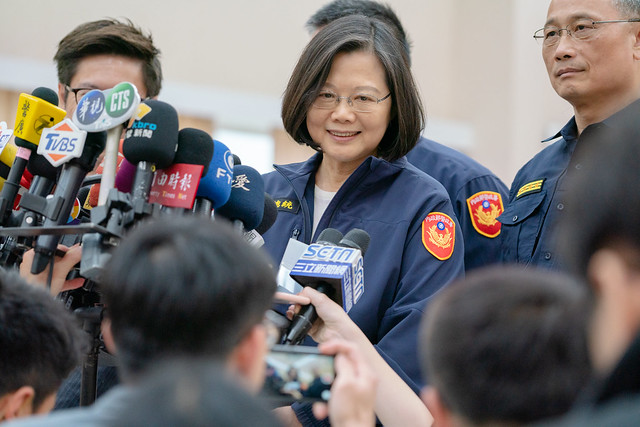 隨後,總統接受媒體聯訪時表示,今天她到警政署來見證警察同仁換裝新制服,可以看到警察同仁換上新制服後,看起來都非常有精神,她相信對他們在執行勤務上,一定會更安全、也更有效率,同時她也要向警察同仁說一聲辛苦了。國家社會的安定,要靠他們全力來保護人民,這是我們對警察同仁們表達的敬意。