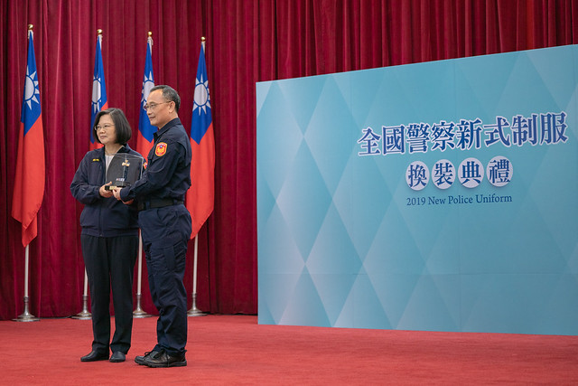蔡英文總統今(18)日上午出席「全國警察新式制服換裝典禮」時表示,警察制服不僅象徵著國家的責任,也代表警方的整體形象,她期盼透過這套專業、俐落的新式制服,展現臺灣警察的嶄新形象,並協助每一位警察同仁,執勤時更安全、更有效率。