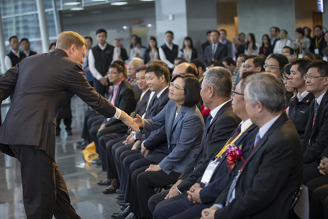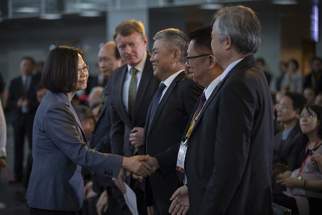 總統感謝主辦單位的用心,串聯了人工智慧科技應用實例和資安防護,來安排多場次的論壇和研討會。更響應政府的政策,邀請新南向國家業者,一起在智慧應用市場上進行交流,讓國際社會看到臺灣的創新和活力。