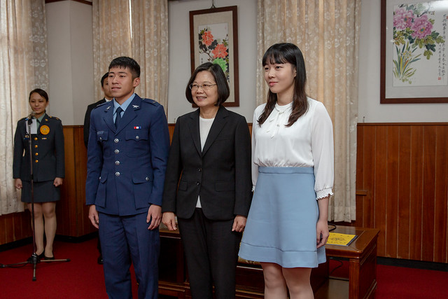 從今天起,各位就要承擔這個神聖而榮譽的使命,你們軍種不同,但任務相同,就是要為國軍盡心盡力,成為國家安全最堅強的屏障。更要讓世界看見我們對「國土主權、寸步不讓,民主自由、堅守不退」的信念。