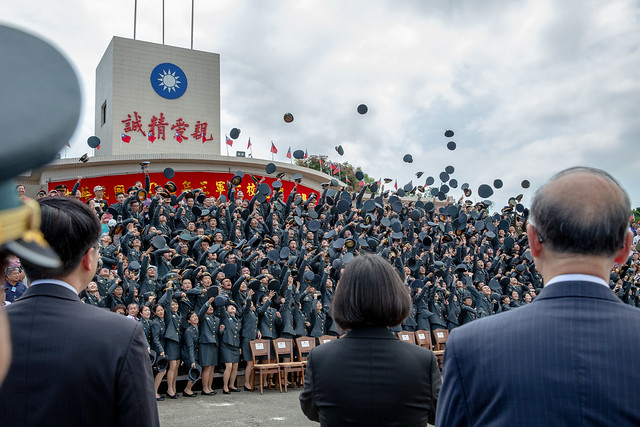 最後,我要祝福大家畢業快樂,現在開始,國軍的榮譽就在各位的肩膀上,我一定會跟大家一起面對挑戰、克服困難。我們一起努力,共同打造「更精實、更現代化的國軍」。中華民國加油,臺灣加油。