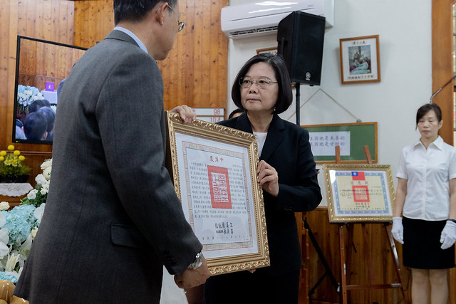 蔡英文總統今(2)日上午前往桃園頒發「雄風飛彈之父韓光渭院士」褒揚令,表彰韓院士對於國防事業及學術研究之貢獻。