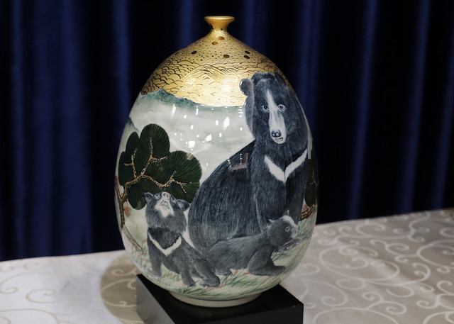 張文蘭指出,總統致贈聖克里斯多福及尼維斯席頓(Tapley Seaton)總督的禮品是《描金彩繪水滴瓶-臺灣黑熊》。臺灣黑熊為臺灣唯一原生之熊類,是保育類動物,這項作品希望藉由臺灣黑熊之美,與席頓總督分享永續發展及尊重生命之美的重要。《臺灣黑熊》是由安達窯-鶯歌的陶瓷文創所製成的藝術品。