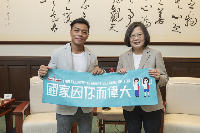 最後,總統再次恭喜兩位拳擊選手,「我們一起努力,讓臺灣的拳擊,在世界舞台上發光發熱」。