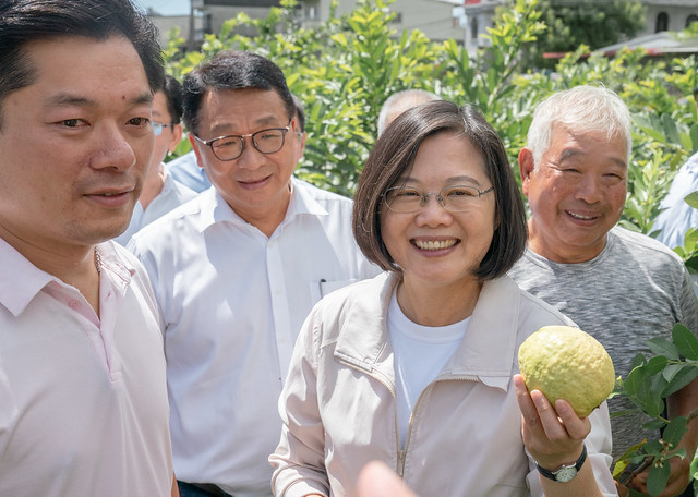 蔡英文總統今(4)日上午前往宜蘭參訪「橘之鄉蜜餞觀光工廠」及「員山鄉紅心芭樂果園」時,說明政府照顧農民的政策,也請鄉親們繼續支持政府。