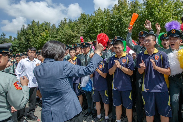 總統也歡迎所有新生選擇進入陸軍專科學校、海軍官校二專班、以及空軍航空技術學院。在未來加入士官行列之前,她期許士官「勇猛頑強、犧牲奉獻、以身作則」的傳統精神,能持續傳承下去,也希望所有新生的活潑生動能成為未來士官創新的動力。