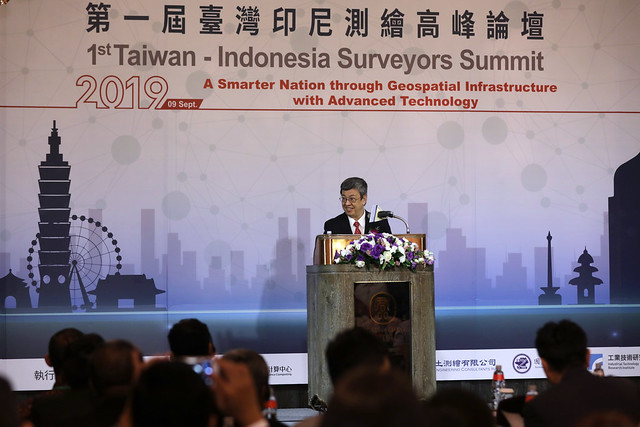 副總統致詞時表示,非常高興受邀出席「第一屆臺灣印尼測繪高峰論壇」,他代表蔡總統向大家表達歡迎之意,「特別是來自印尼的朋友,歡迎你們來到臺灣」!