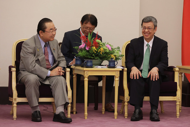 副總統指出,臺日兩國互為第三及第四大貿易夥伴,當前日本面臨美國貿易談判及日韓貿易戰的壓力,臺日開始洽談「跨太平洋夥伴全面進步協定」(CPTPP)正是時機,對日本平衡及拓展海外市場也有幫助。期盼田中眾議員與親善協會的好朋友們可以通過支持臺灣參與CPTPP的決議,協助我國向日本政府執言,讓臺灣對區域經貿整合作出更多的貢獻。