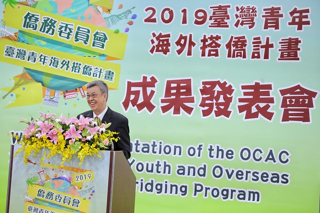 陳建仁副總統今(21)日下午出席「僑委會108年臺灣青年海外搭僑計畫」成果發表會,期許大家能夠將參加搭僑計畫的歷練及心得,拿來自我茁壯,不斷充實自我,未來透過不同的專業與能力,讓世界看見臺灣。