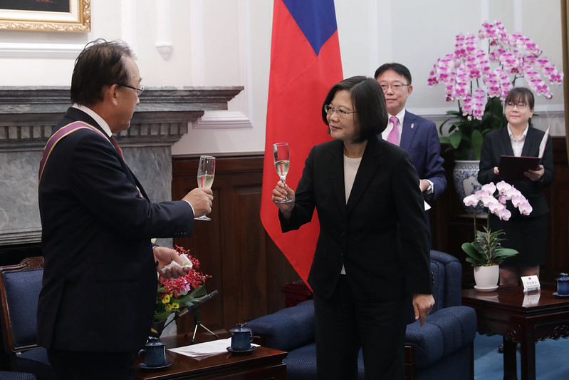 蔡英文總統今(1)日上午頒授日本台灣交流協會台北事務所代表沼田幹夫「大綬景星勳章」,表彰沼田代表任內深化臺日關係之卓越貢獻。