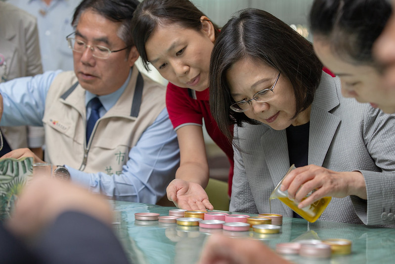 隨後,總統也和現場的長輩們共同體驗製作痠痛舒緩精油膏,現場氣氛溫馨愉悅。