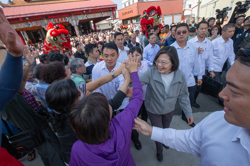 總統在「社口萬興宮」時接受媒體聯訪。針對高雄市長韓國瑜昨日造勢場合有人丟雞蛋事件,總統回應表示,選舉的重點在於大家說出理念、願景及政績,來爭取人民支持。我們希望選舉是一個理念價值的競逐,而不是仇恨的鼓動。昨天這件事情令人很遺憾,我們也要求警方務必要找出做這些不正當事情的人。民主社會的選舉在於理念與願景的競逐,而不在鼓動仇恨或是訴諸暴力,這都不是一個民主社會應該有的現象。