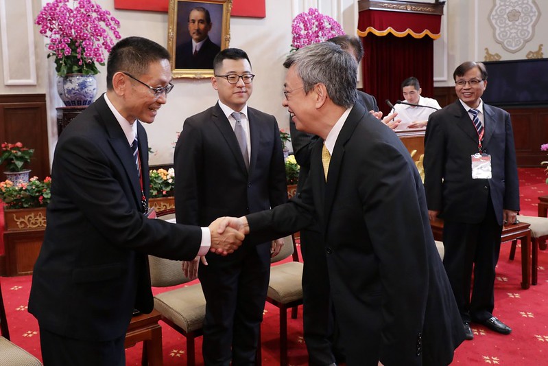 訪賓一行由「台灣永續關懷協會」創會理事長張清芳率領,內政部次長邱昌嶽陪同,前來總統府拜會副總統。