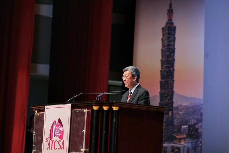 副總統以英文致詞時表示,ATCSA會議每年於亞洲各國輪流舉行,今年在臺灣舉行的是第二十九屆亞洲胸腔及心臟血管外科學會年會,臺灣的主辦單位為臺灣胸腔及心臟血管外科學會。感謝ATCSA 2019 大會提供這麼美好的平台,讓胸腔及心臟血管外科領域的專家學者,有相互分享最新學術研究與技術的機會。
