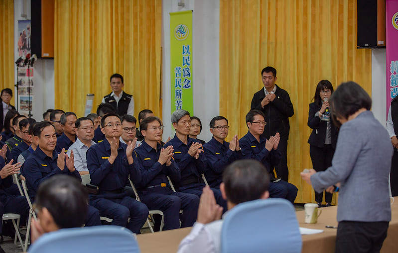 總統強調,政府會持續改善警察同仁的福利,尤其是就醫比照軍人的待遇,希望能夠照顧警察同仁的健康。也會持續地改進同仁裝備,讓大家在執行勤務時能更安全、更有效率。至於住宿方面,會開始執行警察社會住宅專案計畫,讓同仁在住的方面沒有後顧之憂。