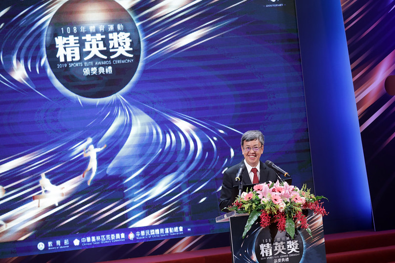 副總統致詞時表示,非常高興參加「108年體育運動精英獎頒獎典禮」,看到現場這麼多優秀的運動選手與團體,他首先要代表總統致上最高的敬意與感謝,感謝選手們的辛苦付出及為國家所作的貢獻,「謝謝你們、臺灣有你們真好」!