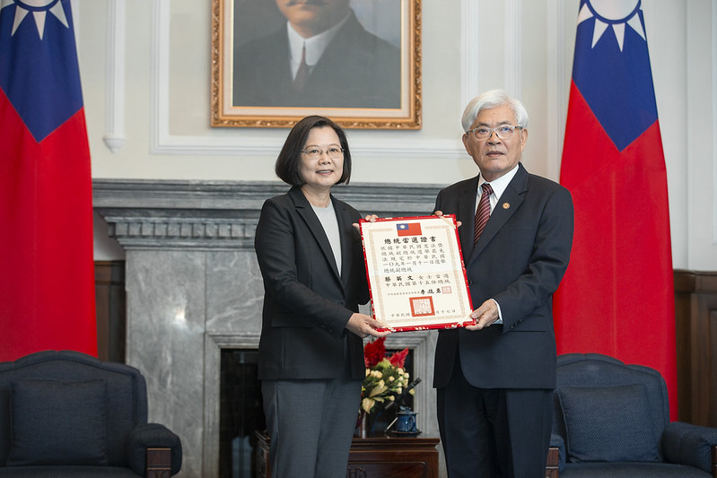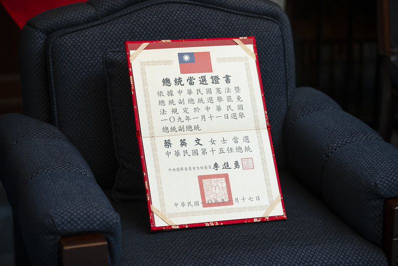 蔡英文總統今(22)日上午在總統府接受中央選舉委員會致送第15任總統當選證書。