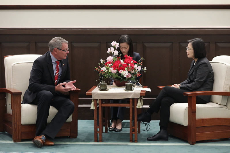 訪賓一行由外交部次長謝武樵陪同,前來總統府晉見總統,國家安全會議秘書長李大維也在座。
