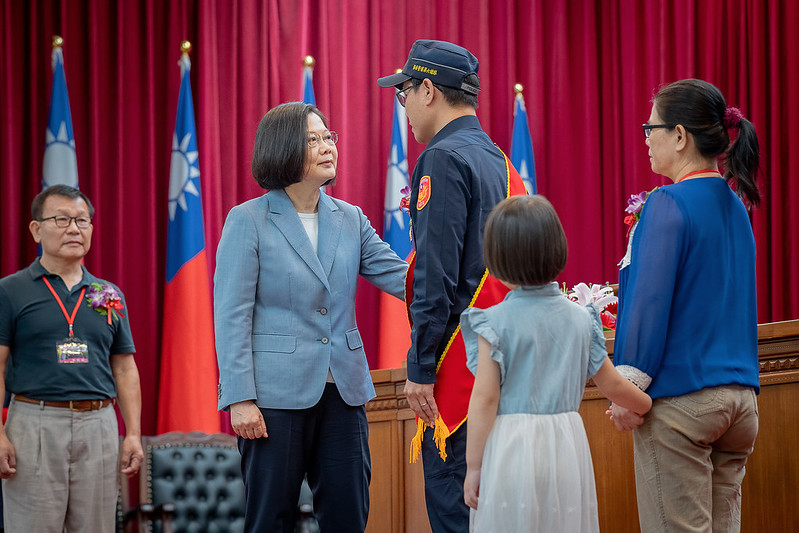 蔡英文總統今(15)日上午出席「109年警察節慶祝大會」時指出,行政院優先推動的「警用無線電汰換更新專案」及「精進員警執勤安全方案」現在已有初步的成果。針對現有警用無線電裝備老舊、已經編列預算,在「整體規劃,分區啟用」的原則下,逐步汰換;為了保障第一線員警的安全,行政院也已經核定4億8,000萬經費,要增購更輕便的警棍、拋射式的電擊器,以及建置互動式情境模擬靶場;此外,警察新制服的替換、基層待遇的提升、警消社會住宅的興辦等措施也都持續推動、精進中,期盼給第一線辛苦的警察同仁更好的福利照顧及更充足的後勤支援。