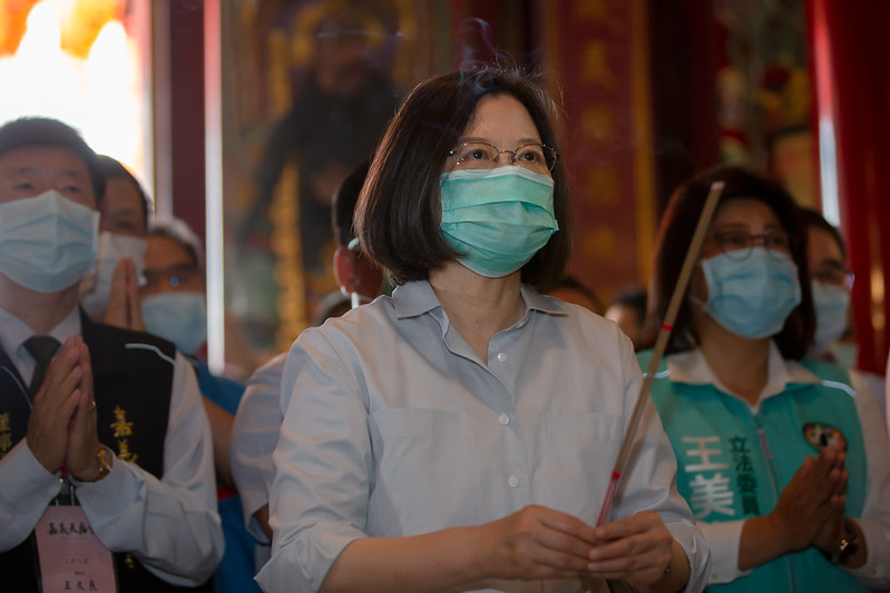 稍早,總統在總統府副秘書長李俊俋、內政部長徐國勇、立法委員王美惠、嘉義市市長黃敏惠及嘉義市議會議長莊豐安等人陪同下,前往「嘉義天后宮」參拜,祈求臺灣風調雨順、國泰民安。她也與鄉親們親切互動,受到民眾熱情歡迎,現場氣氛溫馨。
