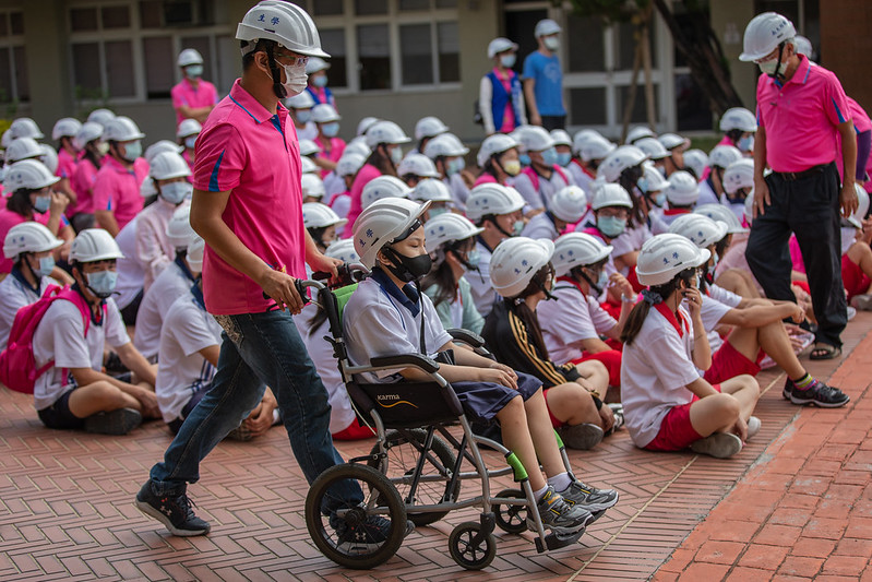 蔡英文總統今(21)日上午前往臺南大學附屬啟聰學校,出席「109年度國家防災日地震避難掩護練習」,期許大家共同重視防災教育,讓學校成為防災校園,給孩子們最安全、最友善的學習環境。