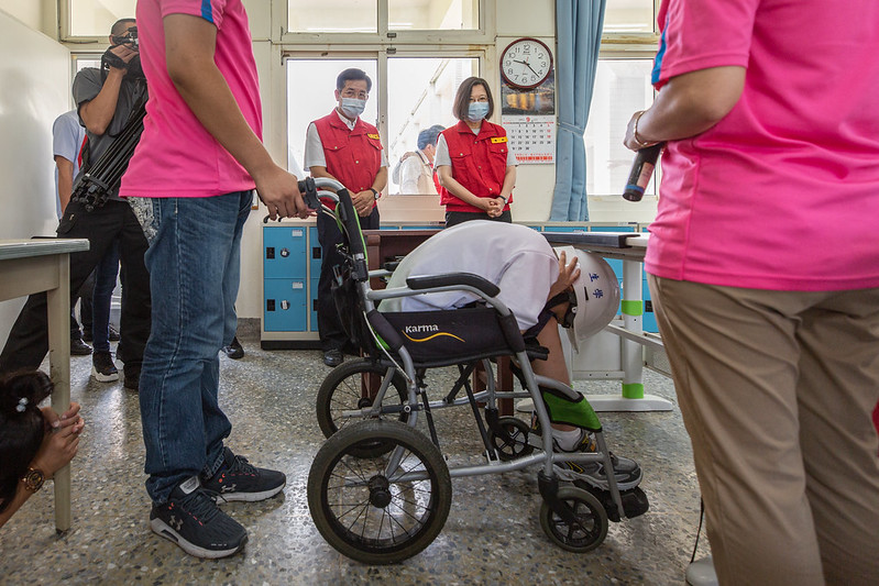 總統也感謝臺南大學附屬啟聰學校校長陳秀雅和老師們的努力,工作團隊非常細心,她希望防災教育在特殊教育學校能夠充分落實。這項任務做起來並不簡單,需要更多的心思、更周全的規劃,很感謝他們對學生的關懷和付出。