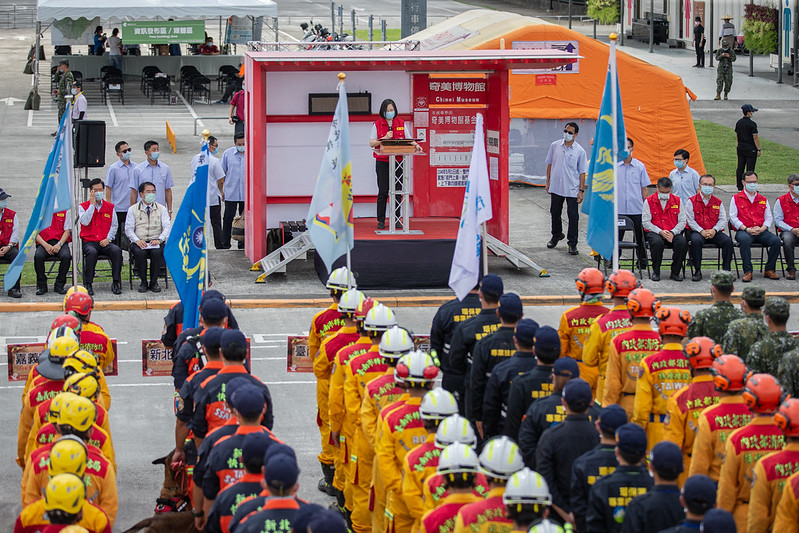 總統勉勵大家,防救災工作「沒有最好,只有更好」。只有保持警覺、不斷精進,才能提升應變能力,讓臺灣更有韌性,更可以克服種種難關。最後,她再次感謝臺南市政府團隊以及現場所有的夥伴,雖然她無法一一點名,但是他們的付出保障了臺灣人民的生活安全,「各位辛苦了」。