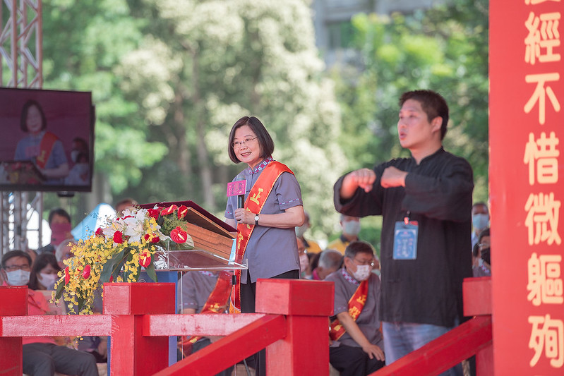 蔡英文總統今(25)日上午出席「2020臺北客家義民嘉年華主祭大典」時指出,推動客庄產業發展,找回客庄文化榮光,一直是政府這幾年來努力的方向,接下來,將推動「客語復振」,讓客家話及客家文化,能夠代代相傳。
