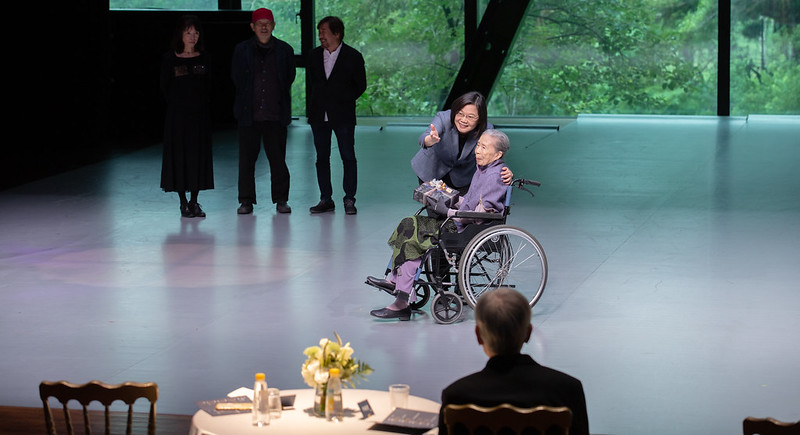 總統認為,臺灣的藝術家、文化人,不只專注在創作,也往往關心公共議題,見證了臺灣的民主發展和社會變遷。她要感謝劇場工作者王墨林老師,以及影像工作者柯金源導演,在創作中結合社會實踐,從批判和辯證中,提出了有力的提醒。