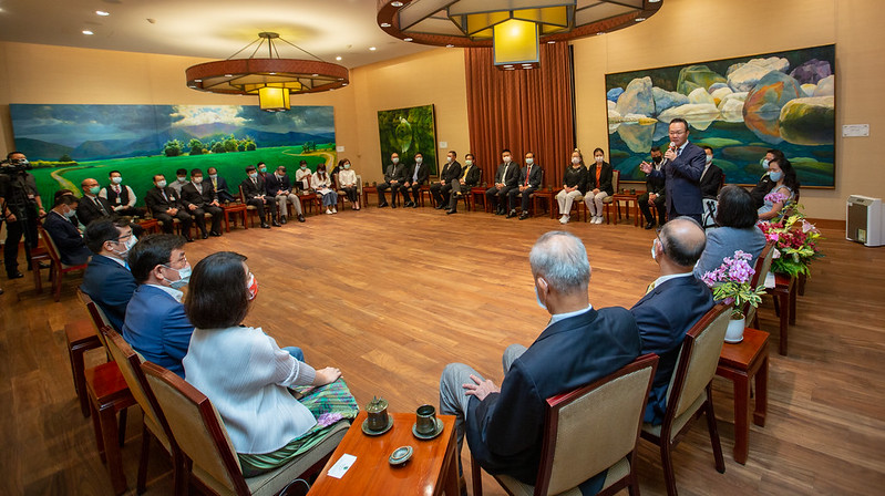 訪賓一行尚包括裙襬搖搖基金會董事長邱鳳玉、中華民國高爾夫協會副理事長陳茂仁,以及共同主辦公聽會之立法委員吳思瑤、黃國書、羅致政、許智傑、林宜瑾等,由教育部次長林騰蛟陪同,前來總統府晉見總統,總統府秘書長李大維也在座。