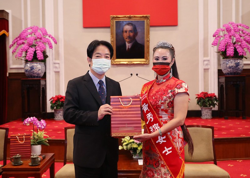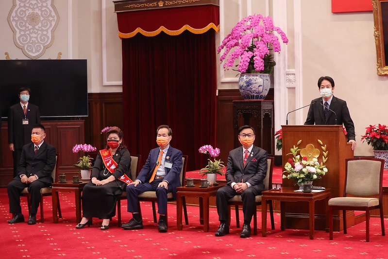 訪賓一行由中華民國表揚好人好事運動協會理事長江達隆率領、內政部長徐國勇及立法委員鍾佳濱陪同,前來總統府拜會副總統。