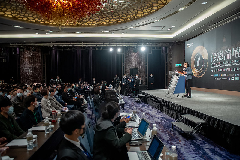 總統也表示,此次論壇相當用心,邀請了國內有立委席次的五個政黨來參加。相信不論是執政黨還是在野黨,大家都能感受到青年朋友,以及社會各界對修憲的呼聲。
